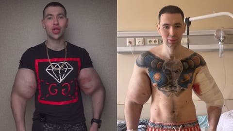 El influencer ruso de 29 años, famoso por sus enormes bíceps y conocido como “el Popeye ruso”, atraviesa su peor momento luego de que su cuerpo rechazara la vaselina y el synthol que se inyectó durante años para lograr su llamativo look. Hoy, los médicos advierten que podría perder ambos brazos.