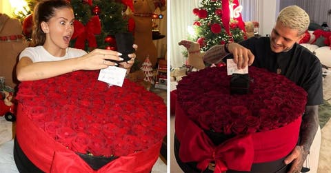 Mauro Icardi se mostró orgulloso del romántico gesto con el que agasajó a la China Suárez en su primer aniversario. De este modo, en la postal siguiente, Eugenia reaccionó sorprendida al abrir la caja cuadrada aterciopelada y encontrar