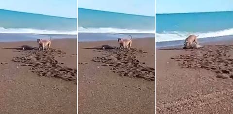 En las imágenes se observa cómo el animal se lanza reiteradamente sobre el lobo marino, que intenta escapar, en un sector de la costa prácticamente vacío. El ataque se interrumpe cuando la persona que graba, a los gritos y con gestos, logra que el can se aleje, aunque este insiste en perseguir a la cría. Solo la intervención directa de quien documentó la escena permite separar a los animales.