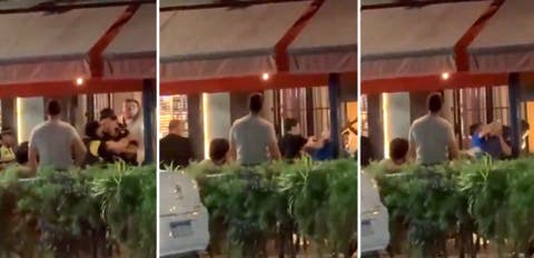 El combate fue dos contra uno, situación que agravó la brutalidad de la escena. Los golpes se multiplicaron en cuestión de segundos y varios clientes debieron alejarse para evitar ser alcanzados por la pelea.