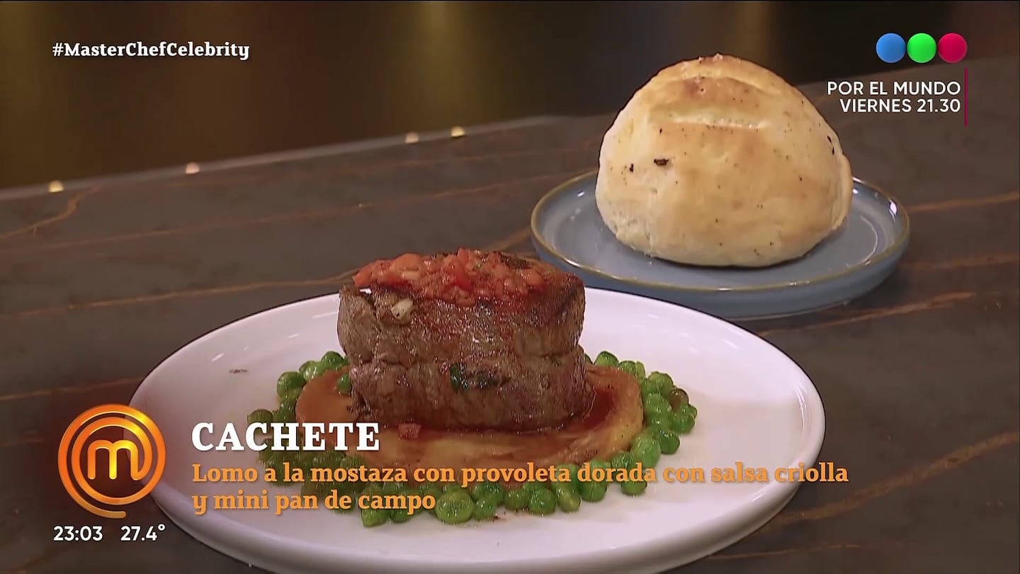 En la gala, Cachete Sierra apostó a un clásico: lomo a la mostaza con provoleta dorada, salsa criolla y mini pan de campo. Sin embargo, la jugada no convenció del todo al jurado.