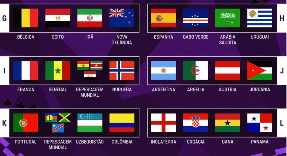 Grupo K: Portugal, Ganador Repesca Mundial, Uzbekistán y Colombia.