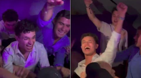 La escena fue pura alegría: Norris, visiblemente emocionado, coreó el estribillo junto a los integrantes del equipo McLaren. El piloto, de 24 años, saltó, bailó y se abrazó con todos, mientras la canción se transformaba en el himno de la noche.