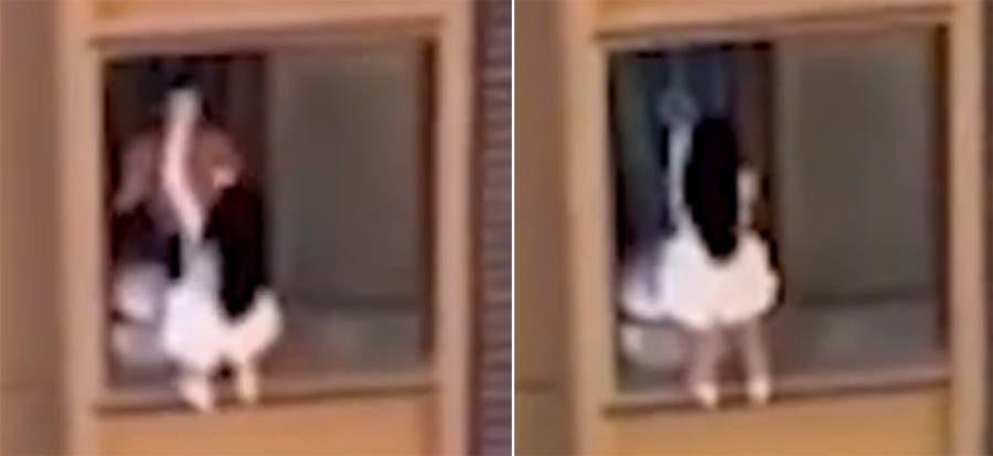 la mujer, desesperada golpea la ventana del vecino quien sorprendido atina a ayudarla. Logra tomarla del brazo y del cuerpo para introducirla hacia dentro de su casa. La secuencia dura poco más de un minuto, pero mantuvo en vilo a las miles de personas que lo reprodujeron en las redes.