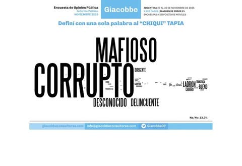Definirlo con una sola palabra reveló que los encuestados lo califican principalmente como mafioso, corrupto, sinvergüenza y delincuente.