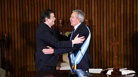 La ceremonia siguió todos los pasos institucionales: Himno Nacional, lectura del acta del Tribunal Electoral que proclama a las nuevas autoridades, y la firma de la resolución correspondiente por parte de Zamora, Suárez y Carlos Silva Neder. Acto seguido, el presidente de la Cámara tomó juramento al mandatario electo, quien respondió con un firme “Sí, juro”.
