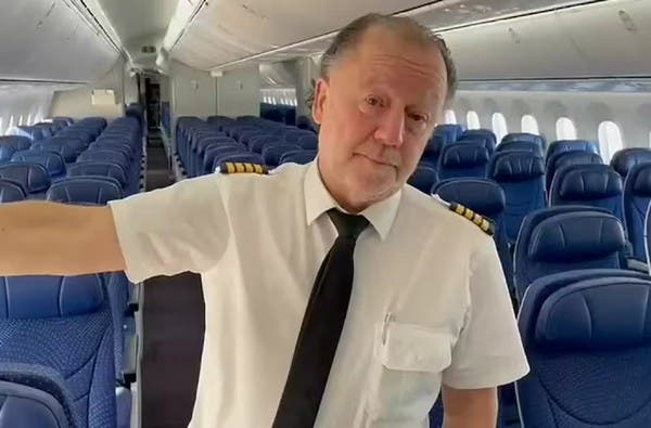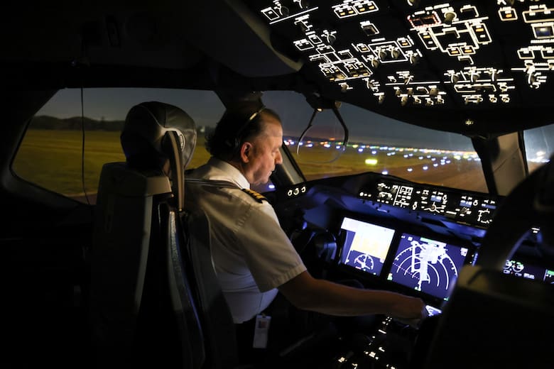 Enrique Piñeyro en la cabina de su Boeing en 2022, en un vuelo humanitario de Solidaire a Varsovia