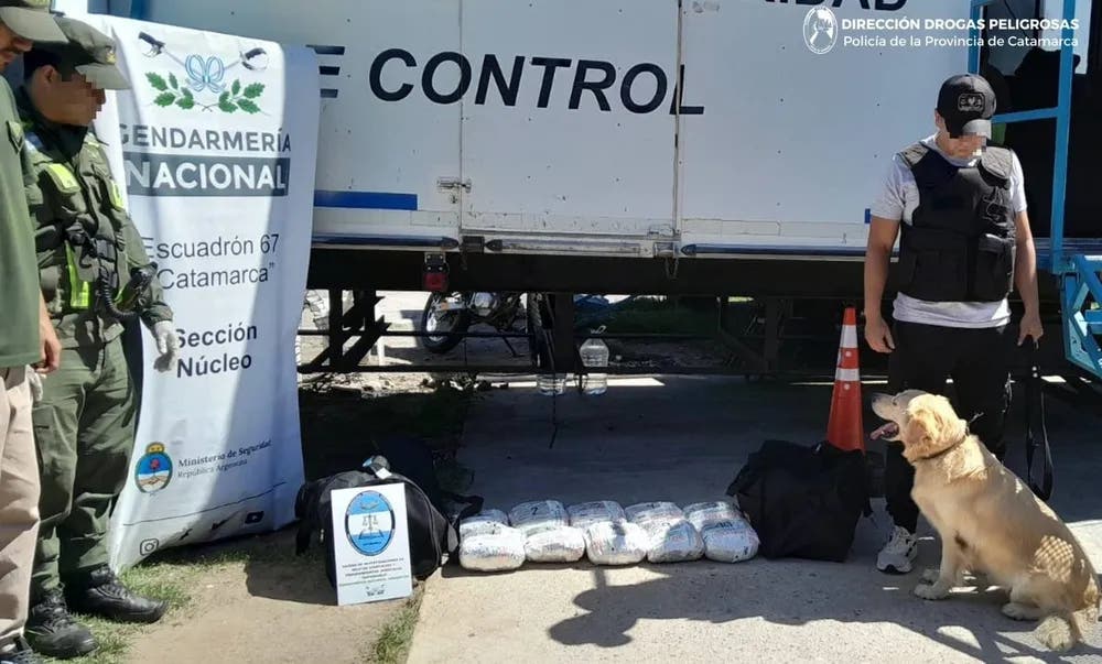 Las autoridades destacaron el rol del can entrenado y la coordinación entre las fuerzas intervinientes, que permitió frustrar el traslado del cargamento antes de que llegara a destino.