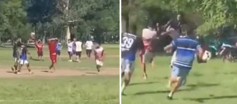 Imágenes viralizadas en redes sociales muestran cómo una discusión deportiva escaló rápidamente a la violencia física. El ataque se desató cuando su equipo ganaba 2-1. En los videos se observa a la víctima intentando escapar mientras es perseguida por un grupo de agresores. El joven fue alcanzado y golpeado salvajemente.