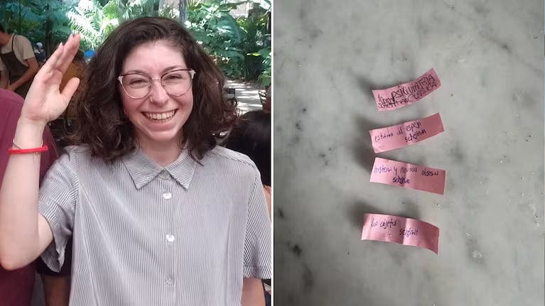 En la imagen se podía ver que su amiga había guardado varios papeles con los nombres de algunos temas del parcial para “congelarlos” y poder aprobar.