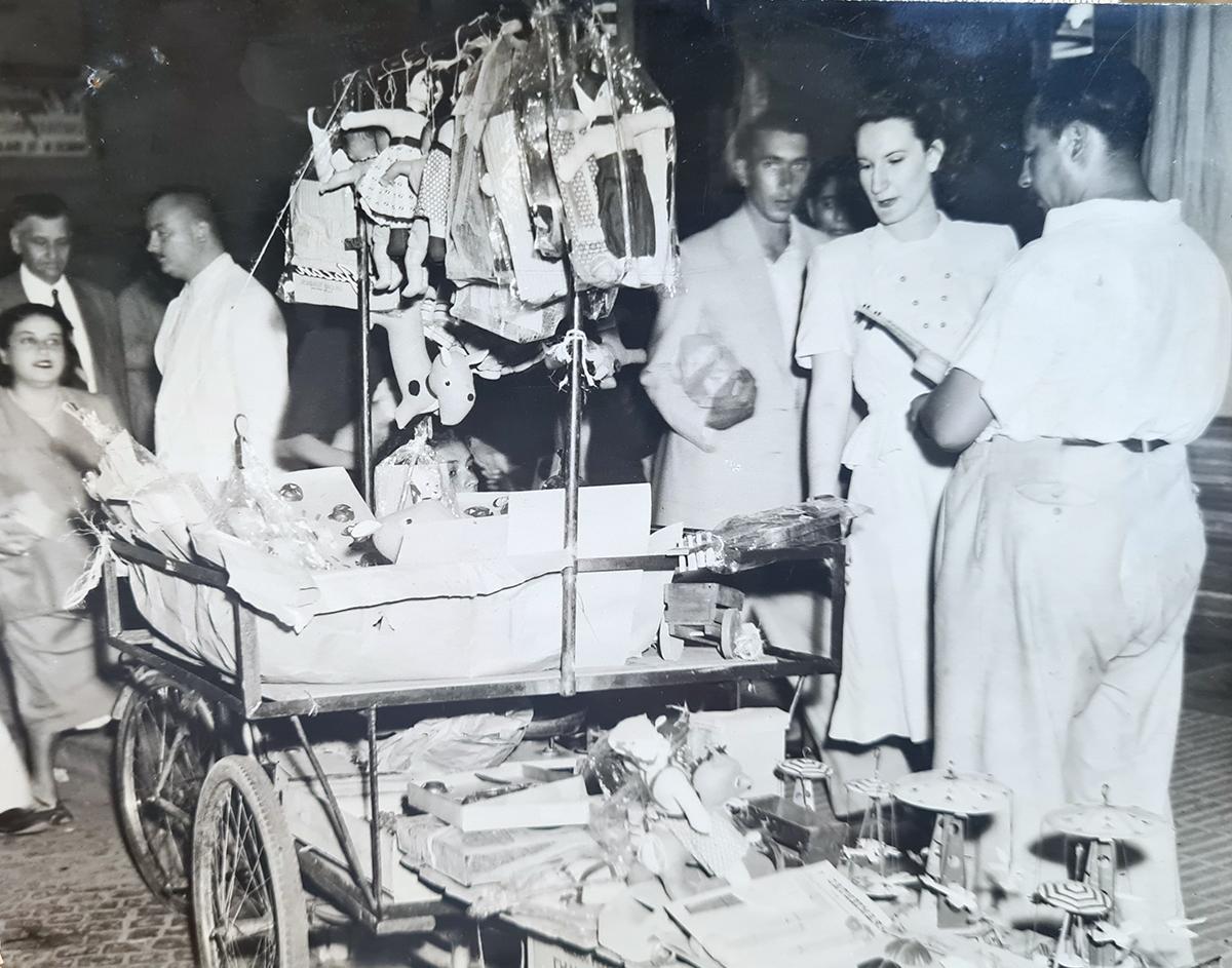 Entre las imágenes más antiguas aparece una postal de 1935 tomada en el almacén Bartolo Roig, uno de los tantos comercios tradicionales donde vecinos y familias se reunían para hacer las compras previas a Nochebuena.