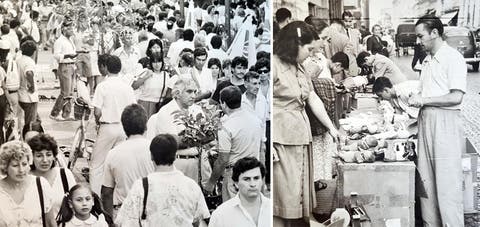 Finalmente, varias imágenes registran la venta de juguetes en puestos callejeros durante las décadas del ’50 y del ’80. Veredas, plazas y zonas céntricas se llenaban de vendedores, familias y niños eligiendo regalos en los días previos a la Navidad, en un clima marcado por la cercanía, la austeridad y el contacto directo entre comerciantes y compradores.
