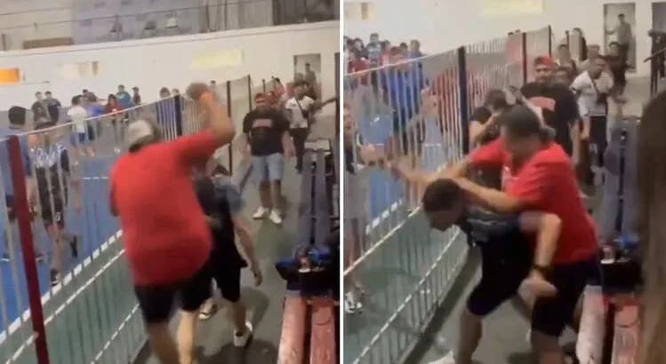 Los gritos e insultos se potenciaban por el eco del lugar. Incluso había otros adultos que incentivaban la pelea a pesar de que fuera frente de los niños. “Dale, loco, dale”, gritaba una mujer que filmaba cómo un padre le pegaba a otro en el campo de juego.