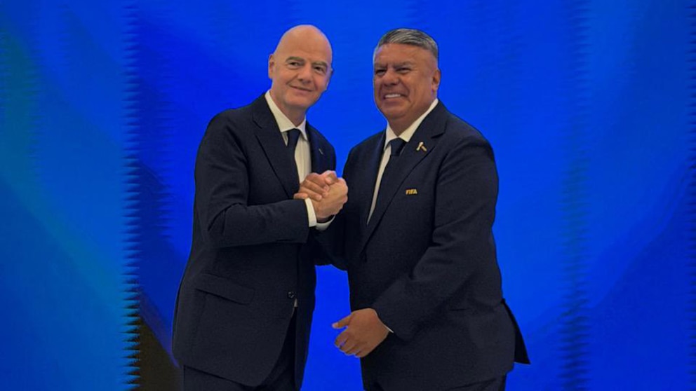 Chiqui Tapia con Gianni Infantino en el Congreso de la FIFA en Qatar
