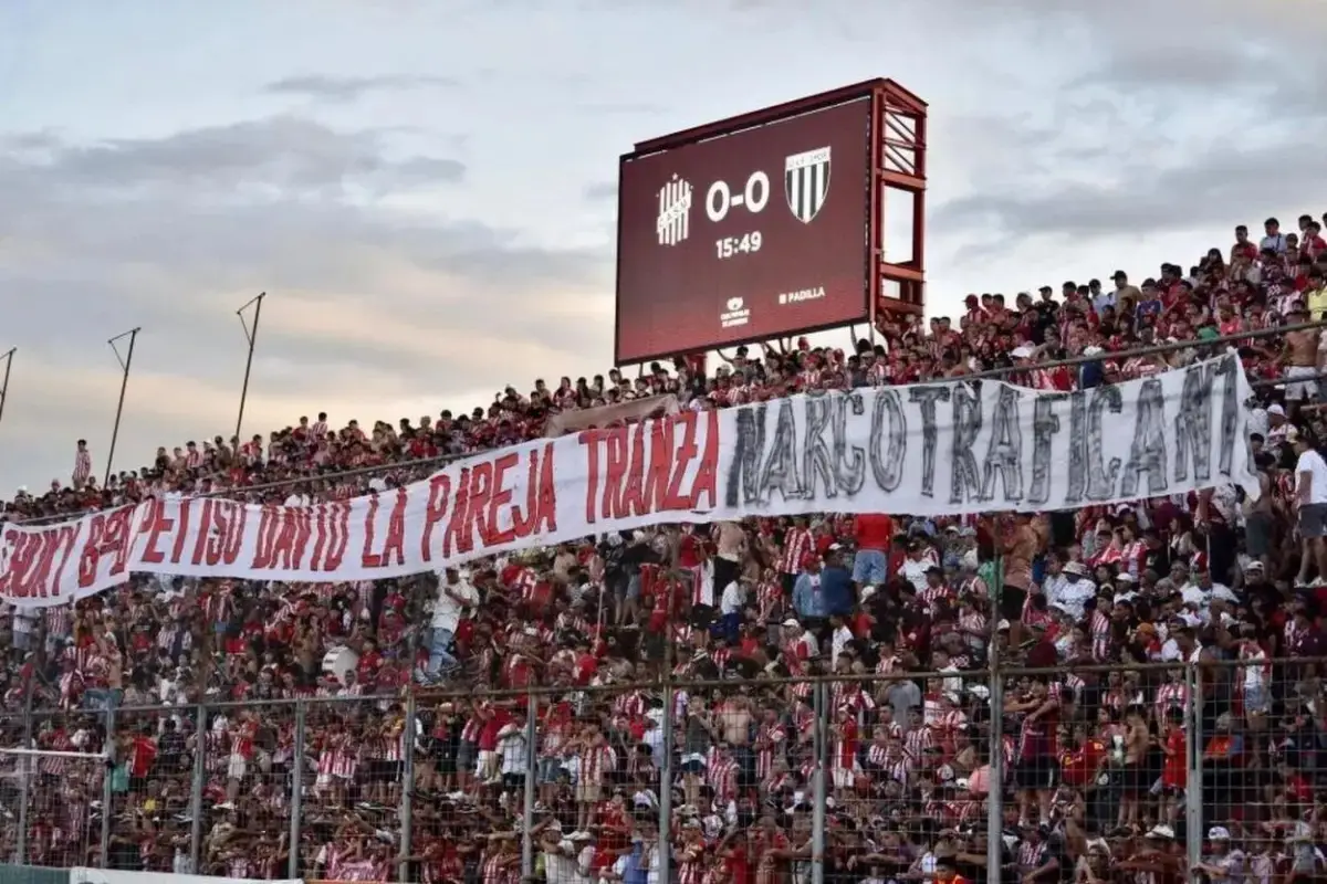 EN PROBLEMAS. La bandera que se exhibió en el estadio de San Martín por orden de Ángel “Petiso David” sufrió un duro golpe hace un año, cuando quedaron al descubierto sus presuntos vínculos con el narcotráfico en un episodio inédito para la historia policial tucumana. En diciembre pasado, durante un partido en el estadio de San Martín, Ángel “El Mono” Ale ordenó colgar una bandera en la que lo señalaba públicamente como vinculado al tráfico de drogas. Lobo desmintió categóricamente esa acusación en una entrevista con La Gaceta.En septiembre, el fiscal de la Justicia ordinaria Mariano Fernández dispuso una serie de allanamientos en el marco de una causa por un tiroteo, según el expediente protagonizado por Facundo Ale -hijo de “El Mono” Ale- y Javier “Chuky” Casanova, supuesto socio de Lobo. Uno de los procedimientos se realizó en la vivienda del acusado, donde la Policía halló cinco kilos de marihuana.