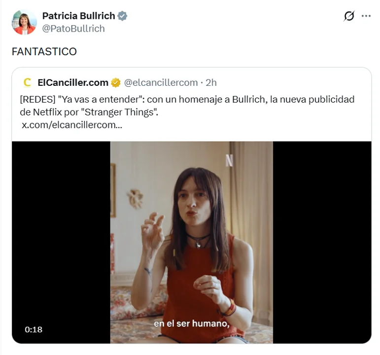 se inspiraron en la frase viral que Patricia Bullrich dijo en el marco de su campaña presidencial del 2023, donde intentó explicarle al periodista Diego Sehinkman su propuesta gubernamental. Mostrando a dos personas teorizar sobre el futuro de Eleven en Stranger Things, una de ellas dice: “Para mí Eleven va a armar un sistema donde el foco esté puesto en el ser humano, desde la perspectiva de que todo lo aquello que tenga que ver con el humano va a estar bajo una filosofía muy interesante”.