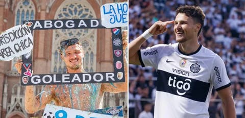 “Abogado y goleador”, reza el cartel de recibida del futbolista que sonrió ante la cámara y combinó sus dos pasiones para darle un tono humorístico.