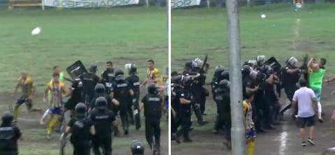 La situación obligó a la intervención de la fuerza policial para resguardar a los árbitros y controlar el desorden dentro del estadio, en un cierre de partido marcado por la tensión y el caos.