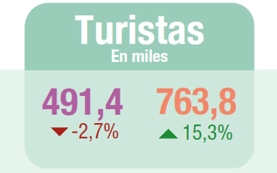 Este resultado fue debido a los saldos negativos de 272,4 miles de turistas y de 203,7 miles de excursionistas.