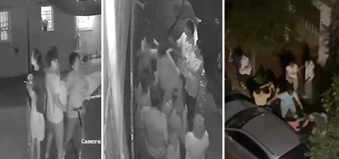 Tras el incidente, los padres de las menores salieron a la vía pública para reclamarle al presunto responsable del lanzamiento del explosivo. La discusión fue subiendo de tono y terminó en una pelea con golpes y forcejeos en plena calle, una secuencia que quedó registrada por cámaras de seguridad y teléfonos celulares de vecinos.