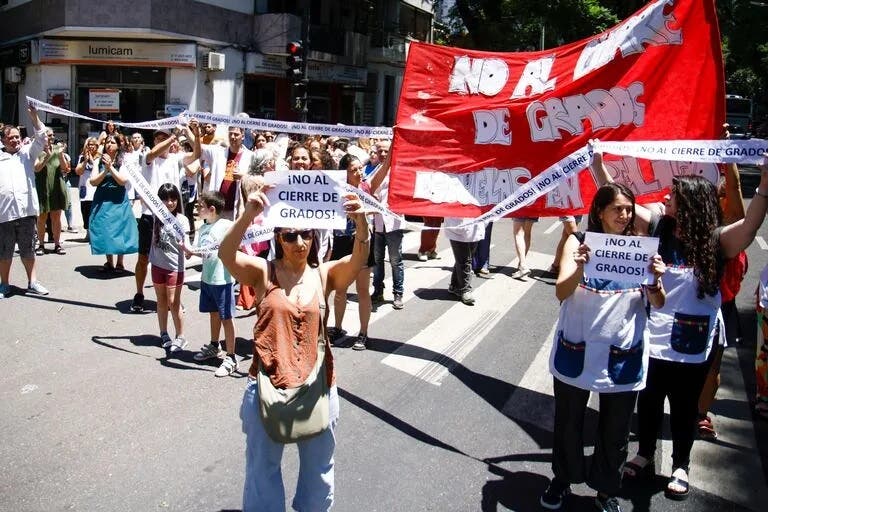 “Lo más preocupante de la situación es que había un compromiso desde el área primaria de no cerrar secciones y que las escuelas articularan acciones para sumar matrícula. Ambas escuelas mejoraron y aún no está cerrada la inscripción”, señaló una persona de la institución al tanto de la situación. Tras movilizaciones a mitad de año, la Dirección de Educación Primaria les había informado a través de una nota escrita que no preveían cierre de grados o secciones en la escuela para el ciclo lectivo 2026. El viernes último, volvieron a protestar en la puerta del establecimiento y sumaron un abrazo simbólico.