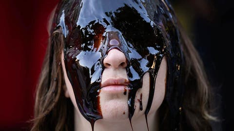 Protesta ambiental frente a Shell en LondresUna activista aparece con el rostro cubierto de una sustancia aceitosa durante una protesta frente a las oficinas de Shell. La manifestación denunciaba la venta de activos petroleros en Nigeria.