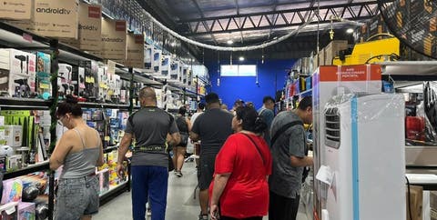 "Compré algunas ollas para cocinar y una freidora, que en otros lugares vi que estaba más caro. Cuesta mirar los productos y convertir el precio (de dólares a pesos), hay mucha gente pero encontrás precios muy baratos", dice Sebastián, que fue con su esposa y dos hijas a comprar a la tienda de Ituzaingó.