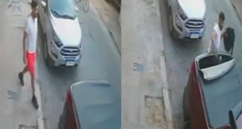 El hecho ocurrió este martes en el barrio Güemes, una de las zonas más transitadas y concurridas de la ciudad. Según se observa en las cámaras de seguridad, el delincuente —vestido con una remera gris, bermuda roja y zapatillas negras— se acercó a la camioneta Fiat Toro de la joven, levantó la lona que cubría la caja y se llevó la valija con sus pertenencias.