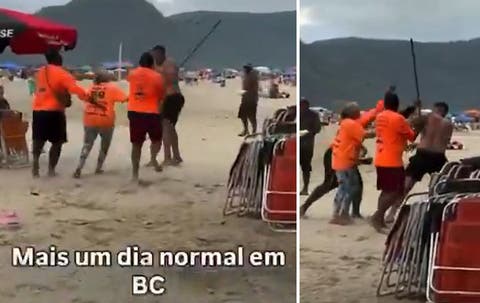 En un momento, cuando el turista logra retroceder, otro vendedor aparece corriendo por detrás y le propina una patada voladora que lo derriba en la arena. La escena fue presenciada por otros veraneantes, que grabaron el ataque sin poder intervenir.