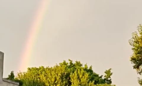 La combinación de precipitaciones dispersas y la luz tenue del sol naciente dio lugar a una postal poco frecuente por el horario, ya que el arcoíris apareció mientras la jornada apenas comenzaba a tomar forma.