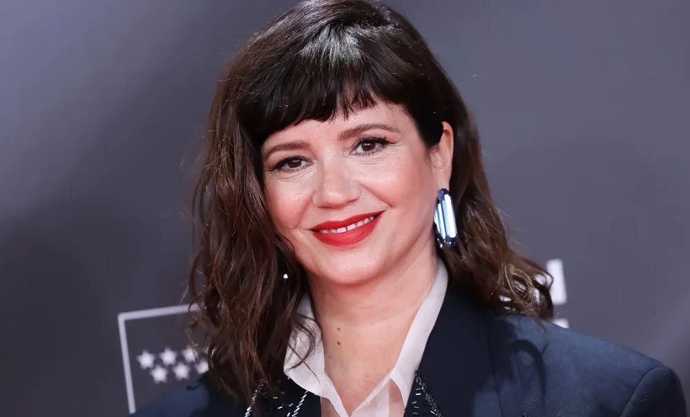 El carrete también incluye un primer plano desenfocado de la actriz, sonriente y acercando la mano a la cámara, con el mismo top animal print, el cabello mojado y suelto, y aros grandes dorados. Parte del entorno de madera y el cielo claro enmarcan la escena. En otro selfie, Griselda se muestra relajada, con una leve sonrisa, el cabello rizado y húmedo y los aros dorados, con un fondo verde de césped y una estructura de madera bajo luz natural.