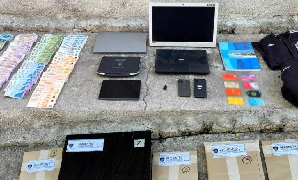 Como resultado de los allanamientos, los investigadores secuestraron una importante cantidad de elementos considerados clave para la causa. Entre el material incautado se contabilizaron 25 teléfonos celulares, computadoras, notebooks, pendrives, tarjetas bancarias de débito y crédito, tarjetas SIM, blísteres de chips sin uso, documentación y cuadernos con anotaciones, según consta en el parte policial al que tuvo acceso la Agencia Noticias Argentinas.