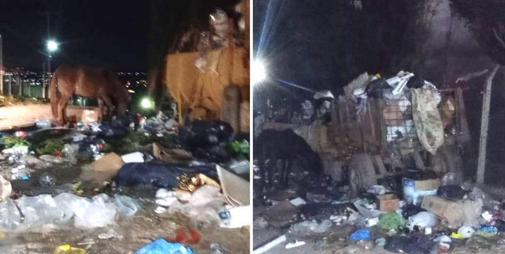 De acuerdo con los testimonios recogidos, durante la noche caballos sueltos rompen las bolsas y dispersan los desechos en la calle, lo que provoca suciedad, malos olores y una imagen negativa en un espacio próximo tanto a la calle principal como a barrios residenciales.