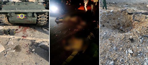 Las imágenes muestran tanques, camionetas e instalaciones militares venezolanas con impactos de balas y explosiones por el ataque de la artillería estadounidense. En varias imágenes se ven al menos cuatro cuerpos mutilados, algunos con traje de fajina militar.