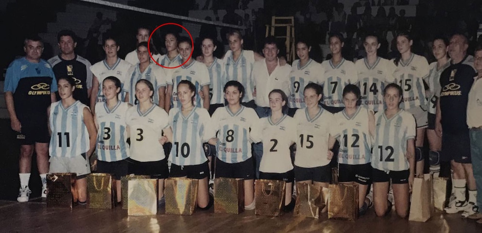 En el círculo, Pamela Pombo en su época de jugadora de voley