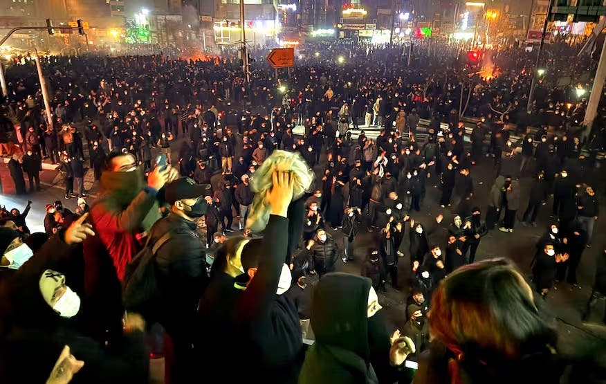 En Teherán, la capital iraní, y Mashhad, la segunda del país, las autoridades cortaron las calles mientras los manifestantes golpeaban objetos de metal mientras estallaban artefactos de pirotecnia.