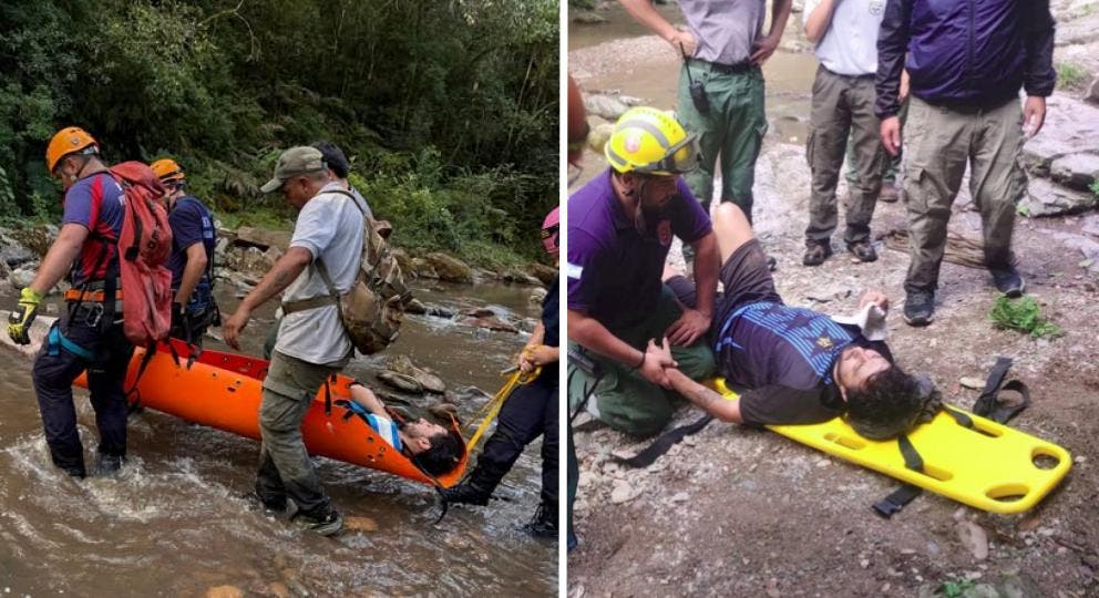 Los Bomberos Voluntarios de Yerba Buena acudieron a la emergencia: esta vez Y lograron rescatar a un hombre de 30 años que se cayó de la cascada del Río Noque en las yungas tucumanas y sufrió graves lesiones."La víctima se encontraba en un sector de difícil acceso, con terreno abrupto, humedad constante y condiciones propias de la selva, lo que demandó un despliegue técnico preciso y sostenido", explicaron los propios bomberos en sus redes sociales, donde calificaron el rescate como "tenso".