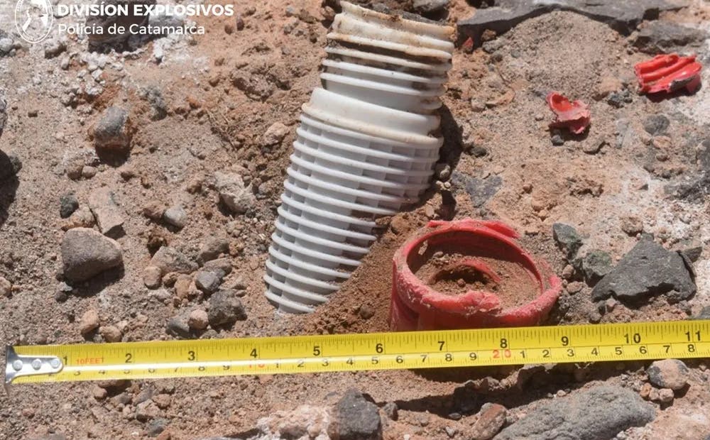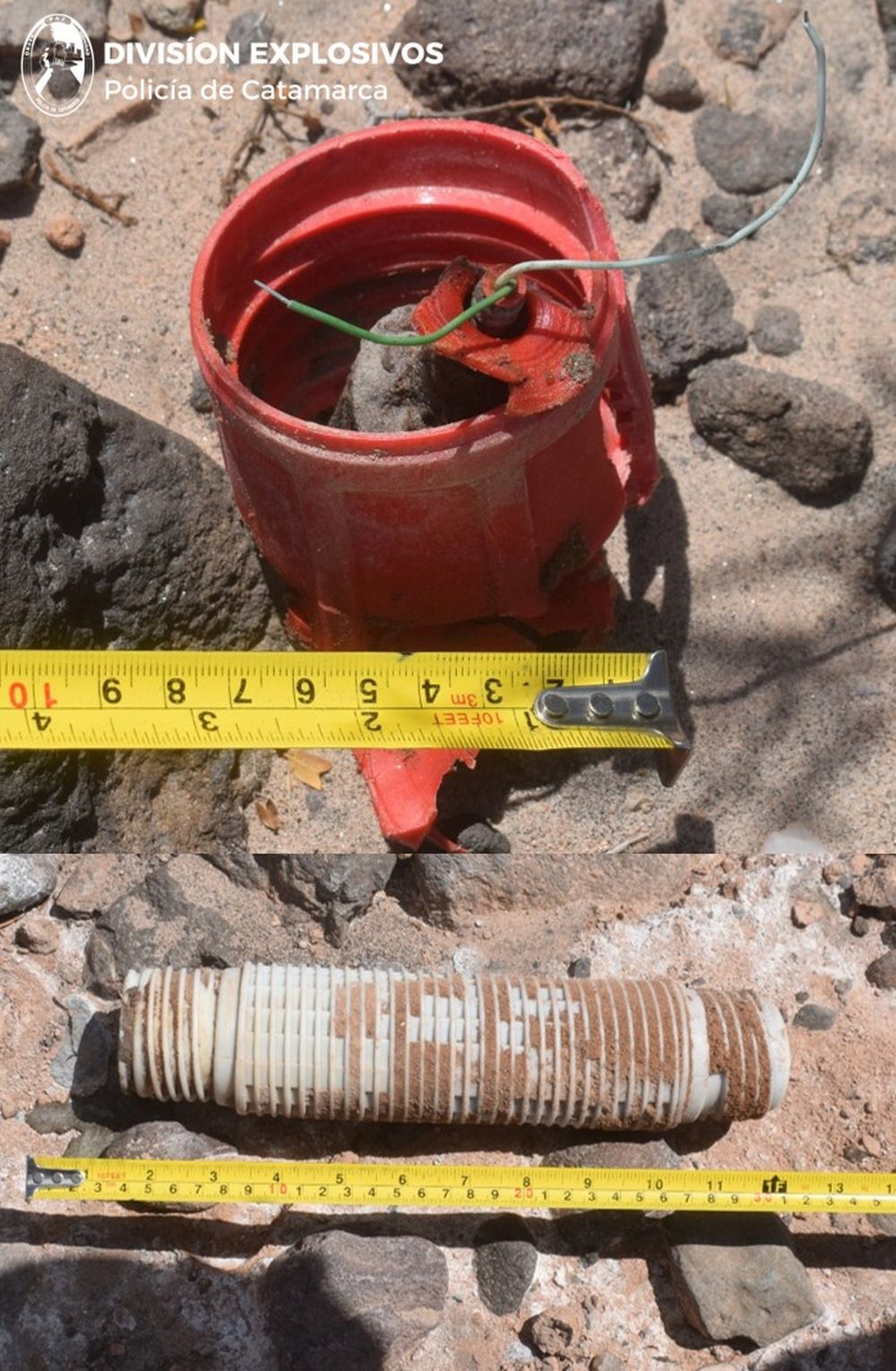 Según el informe oficial, efectivos de la División Explosivos de la Policía de Catamarca tomaron intervención tras el aviso de un hombre que, mientras recorría la zona, advirtió la presencia de elementos sospechosos a la altura del kilómetro 4.185 de la Ruta Nacional Nº 40.