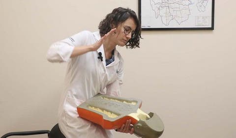“Lo primero que hay que ver es si la persona está pudiendo hablar o toser. Si lo hace de manera efectiva, se debe sentir que saca aire y animarlo a que tosa más para sacar ese objeto que lo obstruye. En ese caso se habla de una obstrucción parcial donde la tos hace que de golpe salga todo el aire del pulmón y saque el objeto que está puesto arriba, como si fuera una tapa en una botella que la presión hace saltar”.