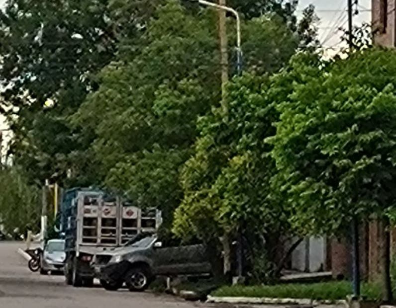 Otro video, publicado con pocos minutos de diferencia por una usuaria de Facebook identificada como "Sofía Martínez", muestra otra vez a lo lejos, a un camión del tipo que se usa para mover garrafas, estacionado frente a una vivienda, al lado de una camioneta de gran porte, gris y con vidrios polarizados.