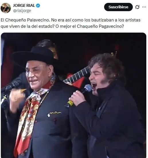 Tras la aparición de Milei junto al Chaqueño Palavecino, Cúneo lanzó un violento descargo cargado de insultos, acusaciones económicas y llamados al boicot. Jorge Rial también se refirió al suceso.El periodista Santiago Cúneo explotó con furia contra Chaqueño Palavecino luego de que el folklorista invitara a cantar al presidente Javier Milei durante su presentación en el Festival Nacional de Doma y Folklore de Jesús María, en Córdoba.