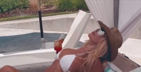 Otro de los videos icónicos de su estadía en Punta del Este muestra a Alfano recostada en una cama balinesa, luciendo una microbikini blanca lisa. El diseño, fiel a las tendencias actuales, presenta tirantes finos regulables y un corte sumamente escotado, tanto en la parte superior como en la bombacha.