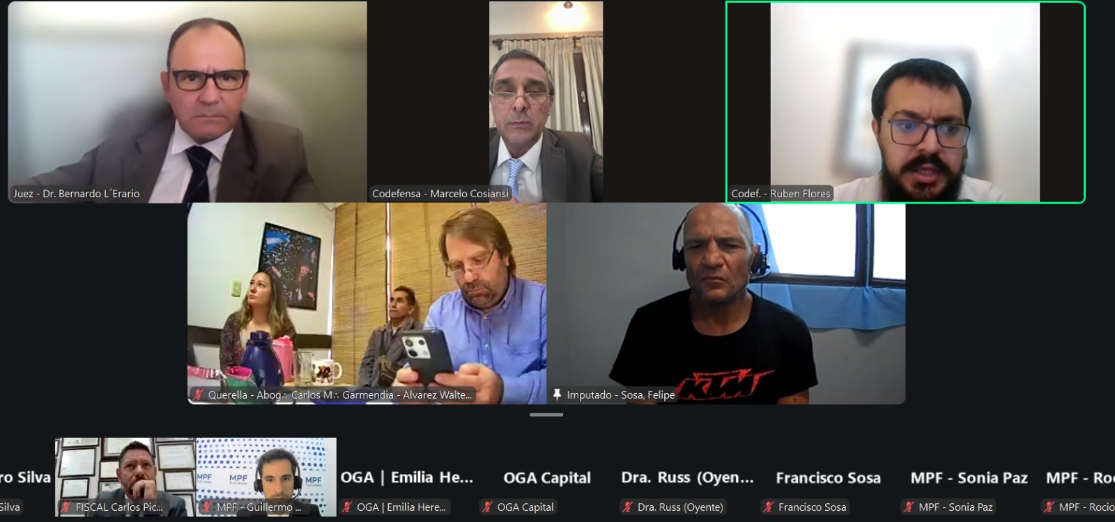 Ya esta primera intervención generó algunos roces. Tras varios minutos de interrogatorio, la defensa de Sosa, conformada por los abogados Rubén Flores, Isaías Díaz Romero, Sergio Díaz Juárez y Marcelo Cosiansi, reclamó al juez la cantidad de preguntas realizadas a su cliente. L´Erario coincidió con esa mirada, y solicitó un cierre a esa primera etapa del proceso.