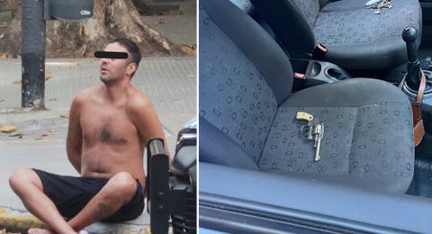 En el asiento del acompañante del vehículo, los efectivos hallaron un revólver calibre 32, con la inscripción “Sew Long CTG” con siete municiones. Testigos consultados por las autoridades señalaron que el hombre se desplazaba por la zona exhibiendo el arma, descalzo y con el torso desnudo, lo que motivó la rápida intervención policial.