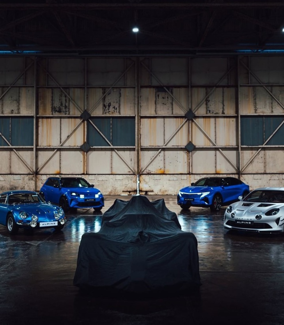 Tres autos azules y uno gris. Un posible guiño sobre los colores que podría llevar el Alpine A526