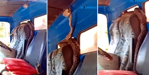 La imagen, que muestra al reptil enroscado sobre el asiento, se convirtió en tendencia en redes sociales y fue compartida masivamente en grupos de WhatsApp de la región. /El Liberal