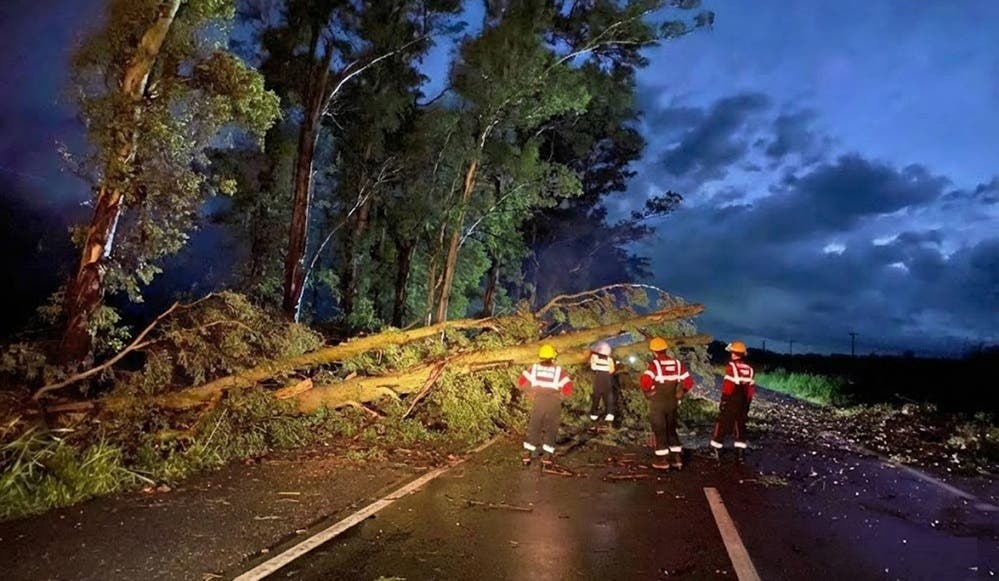 En las imágenes registradas en medio del fenómeno climático se observa a los imponentes árboles interrumpiendo la circulación en la ruta 38 y en calles internas del municipio.