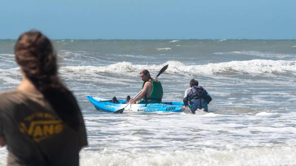 el encargado de la seguridad en la costa advirtió que un kayak había volcado en una canaleta, dejando a su ocupante a merced de la corriente y con riesgo de impactar contra la estructura de hormigón del muelle.