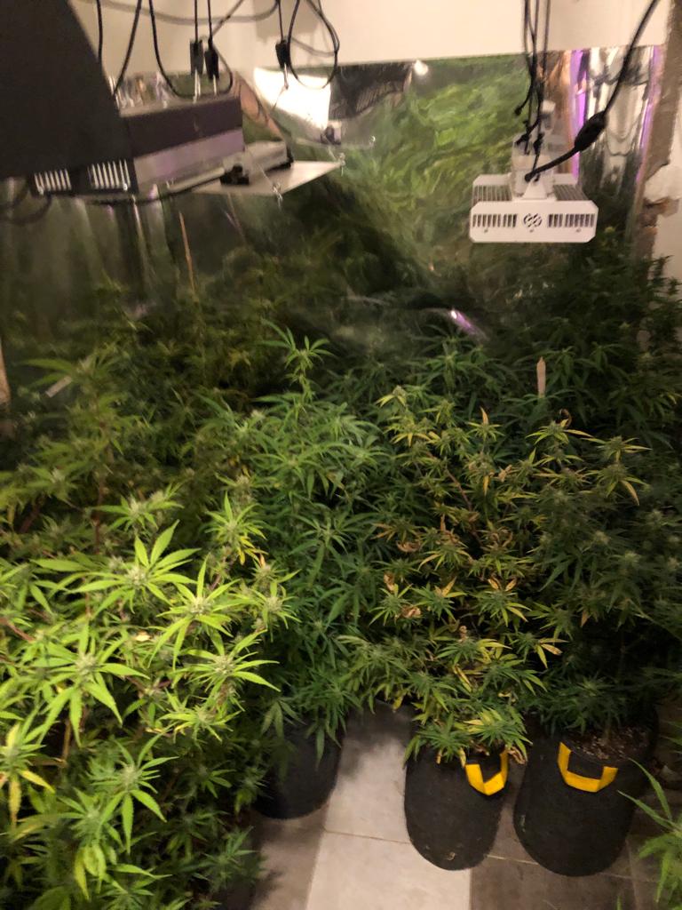 Durante la inspección, los funcionarios encontraron una instalación destinada al cultivo de cannabis en distintos sectores de la vivienda. Según consta en las actuaciones, se hallaron habitaciones acondicionadas con papel reflectante, sistemas de iluminación LED de alta potencia, filtros de carbono, ventilación forzada, aire acondicionado, germinadores y una carpa tipo invernadero.