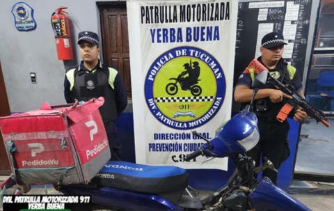 En una rápida intervención, los efectivos de la División Patrulla Motorizada de Yerba Buena lograron frustrar este martes el robo de una motocicleta que aparentemente era usada para el reparto de comida a domicilio. Tras una persecución atraparon a los tres adolescentes que protagonizaron el hecho. El rodado se encontraba estacionado en la acera de las calles Universo y Sarmiento, cuando los jóvenes la tomaron para llevarla empujando por calle Ituzaingó y, al llegar a calle Zavalía, acorralados por los policías, la abandonaron para huir hacia el sur. A